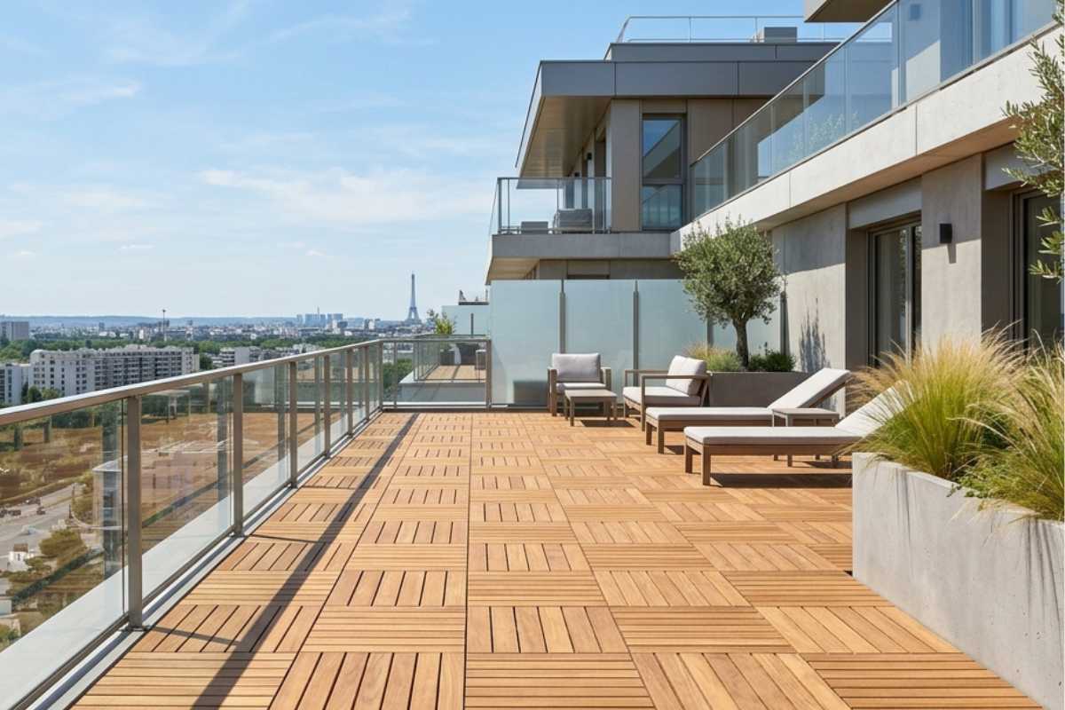 Transformez votre toiture terrasse en espace accessible grâce aux dalles sur plots réglables.